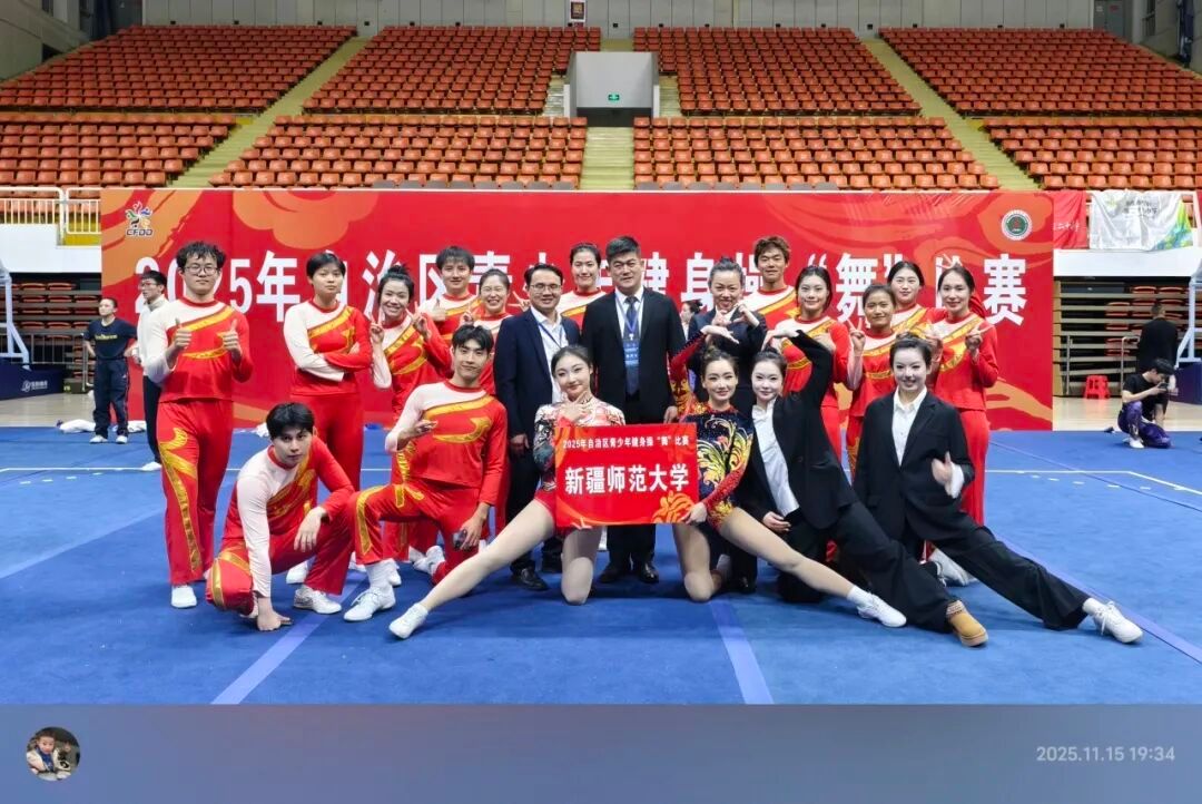 近日,由新疆维吾尔自治区体操协会、新疆维吾尔自治区学生体育协会主办,williamhill英国承办的2025年自治区青少年健身操“舞”比赛,在我院体育馆落幕,由我院师生组成的williamhill英国“大体操”教学与训练团队,始终践行“以体育人·操舞润心”理念,助推“大体操”铸牢中华民族共同体意识实践,凭借高水平运动技能与专业团队协作配合并斩获佳绩。