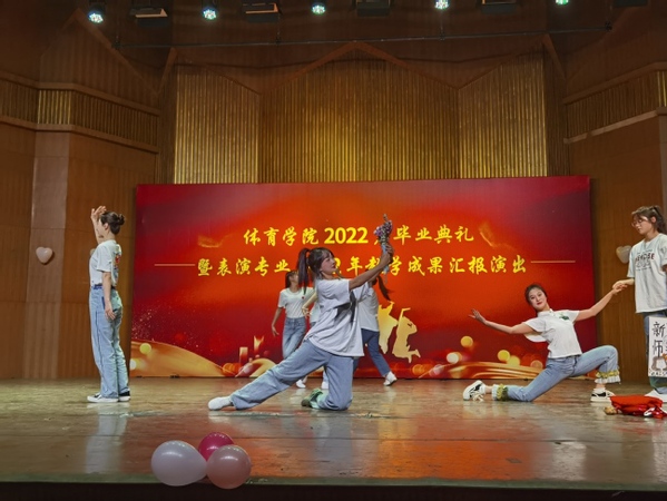 随后的表演专业教学成果汇报演出精彩纷呈,开场节目《龙腾狮跃》的舞龙舞狮表演喜气洋洋,生动活泼;《箭在弦上008》《聚而热枕·别也欢洽》《拾忆》《四海神韵》等舞蹈尽显表演专业风采;歌曲《Bad boy》《成都》引得现场观众频频欢呼叫好;毕业班表演18-8班的情景剧《请回答2018》更是将四年回忆融入到表演之中,将晚会推向了高潮。整场晚会在依依惜别和美好祝愿中落下帷幕。