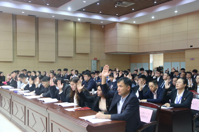 下午15时30分,大会正式开始。全场起立,齐声高唱中华人民共和国国歌。物理与电子工程学院党委书记李莉、校纪委正科级纪检监察员王江丽、物理与电子工程学院副科级组织员赵海琴对本次大会进行督导。