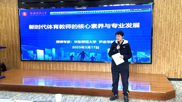 为推动新疆基础教育学科教育高质量发展,提高县级骨干教师学科育人能力与专业素养,2025年3月17日,“县级骨干教师学科育人能力提升研修(周期性)培训项目(初中体育)”专题讲座在昆仑校区议课厅开展,我院副院长曹玉萍作讲话,本次培训项目专题讲座邀请华东师范大学博士生导师尹志华教授,来自全疆各地州的50位县级骨干教师参加。